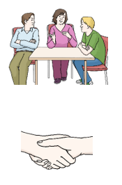 Die Menschen von der Schlichtungs-Stelle überlegen: