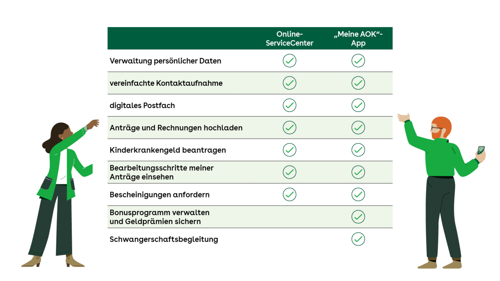 Rechnungen hochladen, Daten ändern, Nachweise abrufen und vieles mehr – mit dem Online-ServiceCenter „Meine AOK“ und der „Meine AOK“-App geht das schnell, sicher und unkompliziert.