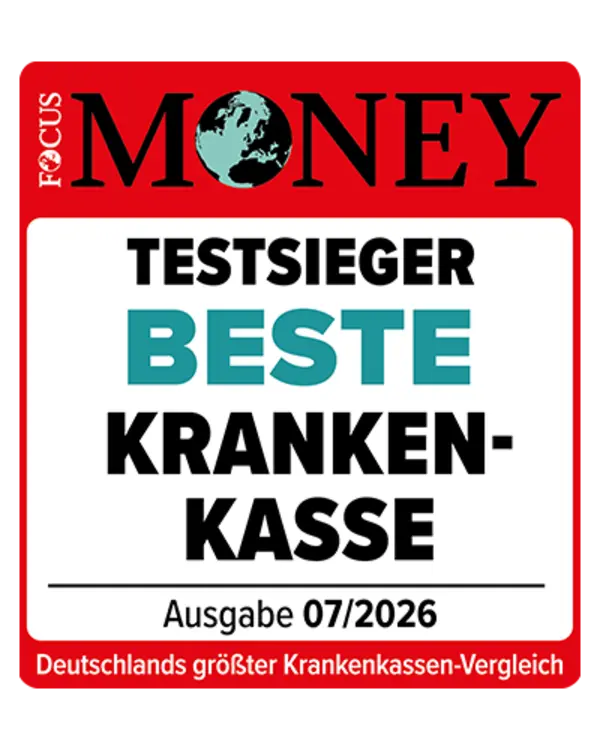Wir wurden 2026 von Focus Money mit dem Siegel „Beste Krankenkasse“ ausgezeichnet und belegen damit Platz 1 im deutschlandweiten Vergleich. Mit hervorragendem Service, besten Leistungen und zahlreichen weiteren Auszeichnungen konnten wir im Test überzeugen.