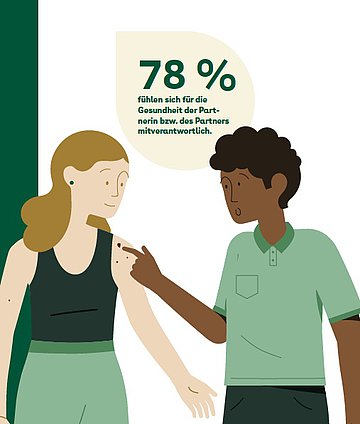 „Gesundheit hat einen hohen Stellenwert in Beziehungen. Dennoch wird durch die Befragung deutlich, dass der Kommunikationsbedarf hierzu in vielen Partnerschaften noch größer ist“, kommentiert Steve Plesker, Geschäftsführer Markt/Produkte, die forsa-Ergebnisse. Demnach würde ein Drittel der Befragten (36 Prozent) gerne mehr mit ihrer Partnerin oder ihrem Partner über Gesundheit sprechen. Ein möglicher Grund dafür: 38 Prozent der befragten Personen sind der Ansicht, dass sich ihre bessere Hälfte nicht ausreichend um die eigene Gesundheit kümmert.