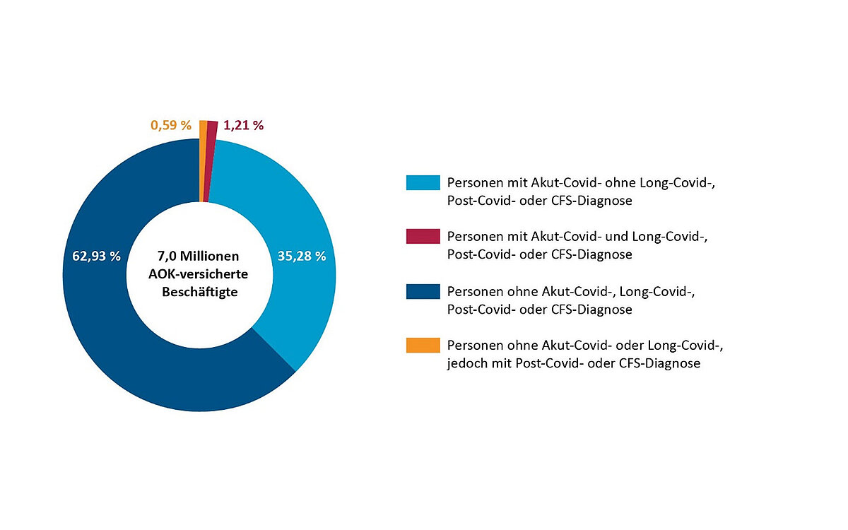 Knapp 2 Prozent der berufstätigen AOK-Versicherten wegen Spätfolgen einer Co-vid-19-Erkrankung krankgeschrieben