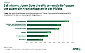 „Obwohl wir alle Versicherten zu diesem Thema angeschrieben haben und seit Monaten auf unseren Informationskanälen intensiv über das Thema aufklären, macht die Befragung immer noch einen großen Informationsbedarf deutlich“, so Carola Reimann. „Es ist kein Wunder, dass die Befragten hier die Krankenkassen im Lead sehen, denn wir sind ja auch die Anbieter der elektronischen Patientenakte Mit der elektronischen Patientenakte (ePA) können Patientinnen und Patienten sowie die an ihrer… und ermöglichen per App oder Desktop-Version den Zugang“. Die AOK bietet unter der Adresse www.aok.de/epa seit Mai 2024 umfassende Informationen zur „ePA für alle“ an, die seit dem Start bereits mehr als 2 Millionen Seitenaufrufe hatten. Sie wird ihre Kommunikation rund um den Start der verpflichtenden Befüllung der ePA noch verstärken.