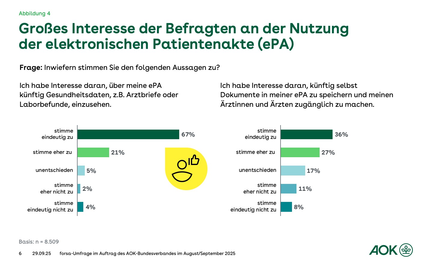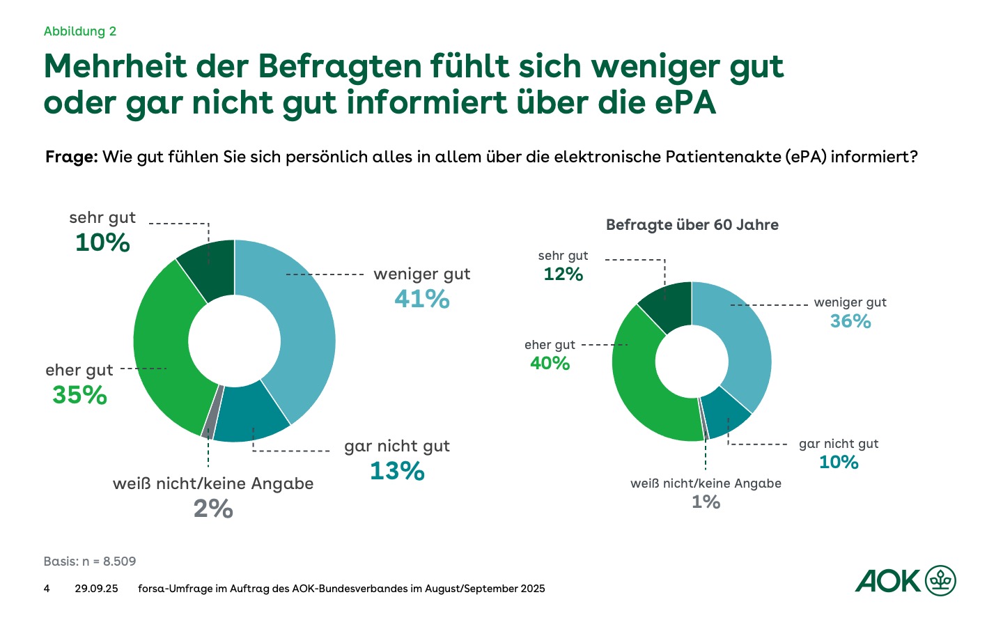 Forsa-Befragung im Auftrag der AOK zeigt nach wie vor großen Informationsbedarf beim Thema ePA