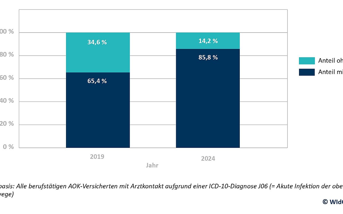 WIdO-Analyse zeigt: Höchststände der vergangenen Jahre auch durch Einführung der elektronischen Krankschreibung verursacht