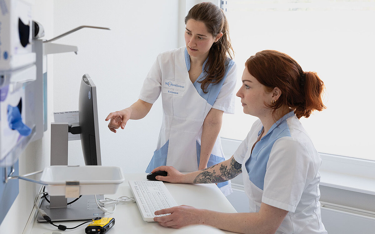 Das Team im WundZentrum besteht aktuell bereits aus fünf Pflegefachpersonen. Alle verfügen über Expertise aus den verschiedensten medizinischen Bereichen, wie beispielsweise Kranken- oder Altenpflege. Und alle absolvierten eine spezielle Zusatzqualifikation in der Wundbehandlung. Diese Qualifizierung zur zertifizierten Wundmanagerin erfolgt über die Akademie-ZWM. Damit wird garantiert, dass das Team immer auf dem neuesten Stand medizinischen Wissens ist.