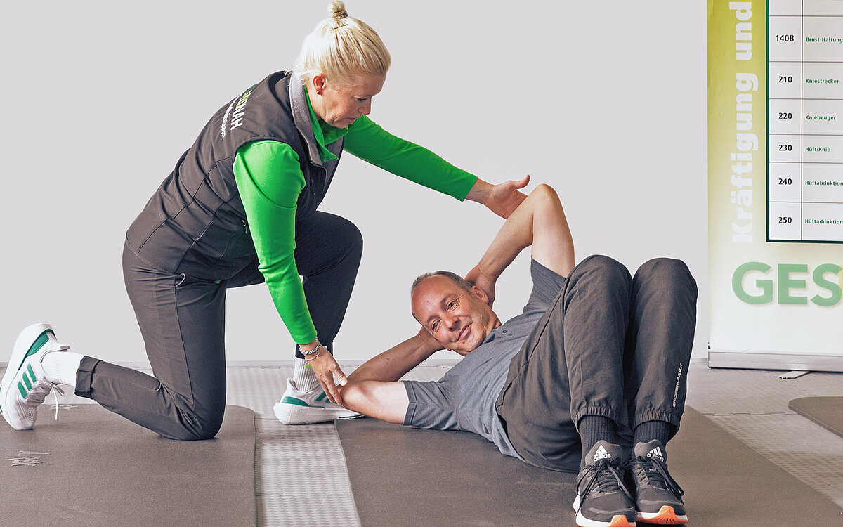 Zusätzlich zu den gerätegestützten Übungen zeigen die Trainer Mobilisations- und Kräftigungsübungen für zu Hause. „Sie erlernen auch ergonomische Verhaltensweisen sowie Arbeits- und Hebetechniken, um Rückenprobleme zu verhindern oder zu lindern“, erklärt Bianca Stöppler. Ein Abschlusstest dokumentiert die Trainingserfolge. Jede weitere regelmäßige sportliche Aktivität wie Laufen, Walking, Schwimmen oder Radfahren verstärkt die positiven Effekte für den Rücken. „Um die Motivation zu erhalten, sollte Bewegung Spaß machen“, betont Bianca Stöppler. Psychosoziale Faktoren können ebenfalls eine Rolle spielen. Sie beeinflussen, ob akute Schmerzen chronisch werden. „Wer viel Stress hat und dauerhaft angespannt ist, bekommt häufig Verspannungen und spürt die Schmerzen im Rücken dann noch schneller und intensiver“, sagt Bianca Stöppler.