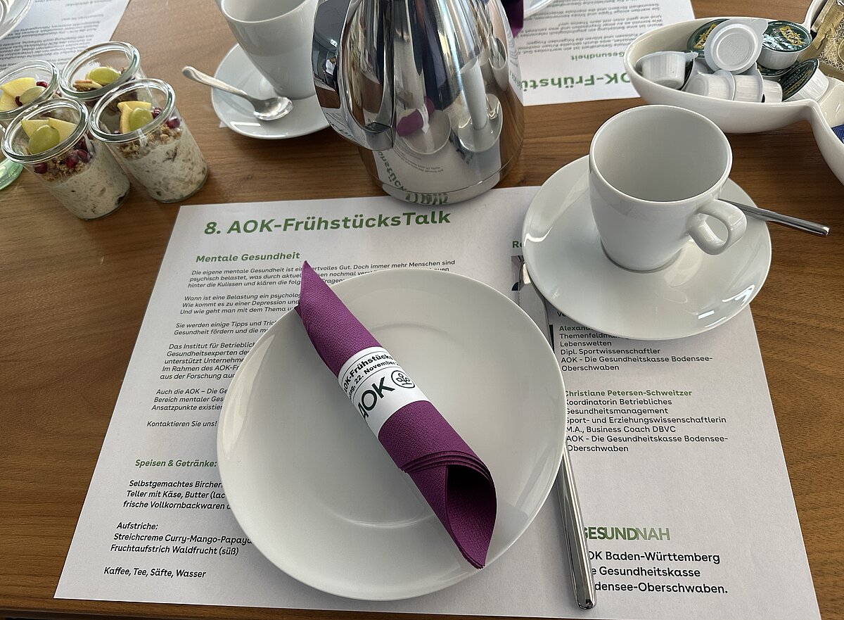 Beim AOK-FrühstücksTalk berichtete die Referentin Emma Erhard im Vortrag „Gesunder Körper – Gesunder Geist?“ über psychische Störungen und warf dabei einen Blick hinter die Kulissen von mentaler Gesundheit. Emma Erhard hat Psychologie (M. Sc.) an der Universität in Konstanz studiert. Ihr Fachgebiet liegt im Bereich der Gesundheitspsychologie. Sie hat umfassende Kenntnisse in den Themenbereichen Schlaf, Stress und mentale Gesundheit und hat sich insbesondere mit der Frage beschäftigt, wie man Menschen zu einem gesunden Verhalten motivieren kann. In ihrer aktuellen Position beim IFBG (Institut für Betriebliche Gesundheitsberatung) bringt sie ihre Expertise unter anderem als Referentin und Project Managerin ein.