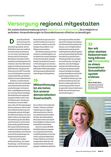 Ständige Erhöhungen der Sozialbeiträge schwächen nicht nur den gesellschaftlichen Zusammenhalt, sondern sind auch eine Belastung für den Wirtschaftsstandort Deutschland. Es ist höchste Zeit für nachhaltig wirksame Strukturreformen zur Verbesserung der Versorgung. Die AOK Baden-Württemberg fordert wichtige Impulse für die dringend notwendigen Veränderungen hin zu einem innovativen, stabilen und nachhaltigen Gesundheits-und Pflegesystem – für mehr gesunde Lebensjahre!