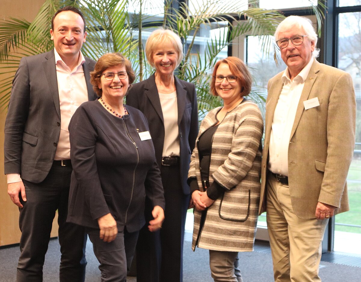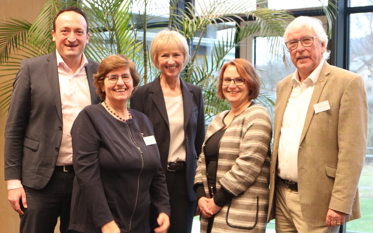 Die alten und neuen Vorsitzenden des Bezirksrats der AOK Heilbronn-Franken mit Michaela Lierheimer – von links nach rechts: Jörg Ernstberger, Marianne Kugler-Wendt, Michaela Lierheimer, Katharina Kaupp und Rolf Blaettner