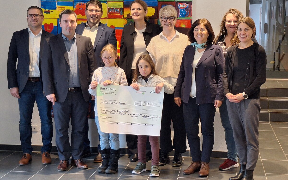 Die "Rest-Cent-Initiative" ist eine freiwillige Spendenaktion, bei der AOK-Mitarbeitende auf die Cent-Beträge ihres Gehalts zugunsten einer Spende an empfangsberechtigte Einrichtungen verzichten. Die AOK Baden-Württemberg fördert gemeinsam mit dem Gesamtpersonalrat (GPR) seit dem 1. Januar 2021 die gemeinnützige Initiative, die in diesem Jahr ihr 5-jähriges Bestehen feiert. Auch die Institutionen, denen die Spenden zugutekommen, werden von den AOK-Beschäftigten vorgeschlagen. Mit 39 Prozent der Stimmen sicherte sich das Kinder- und Jugendheim Baden-Baden in der Voting-Kategorie „Bildungs- und Förderprojekte“ den ersten Platz.
