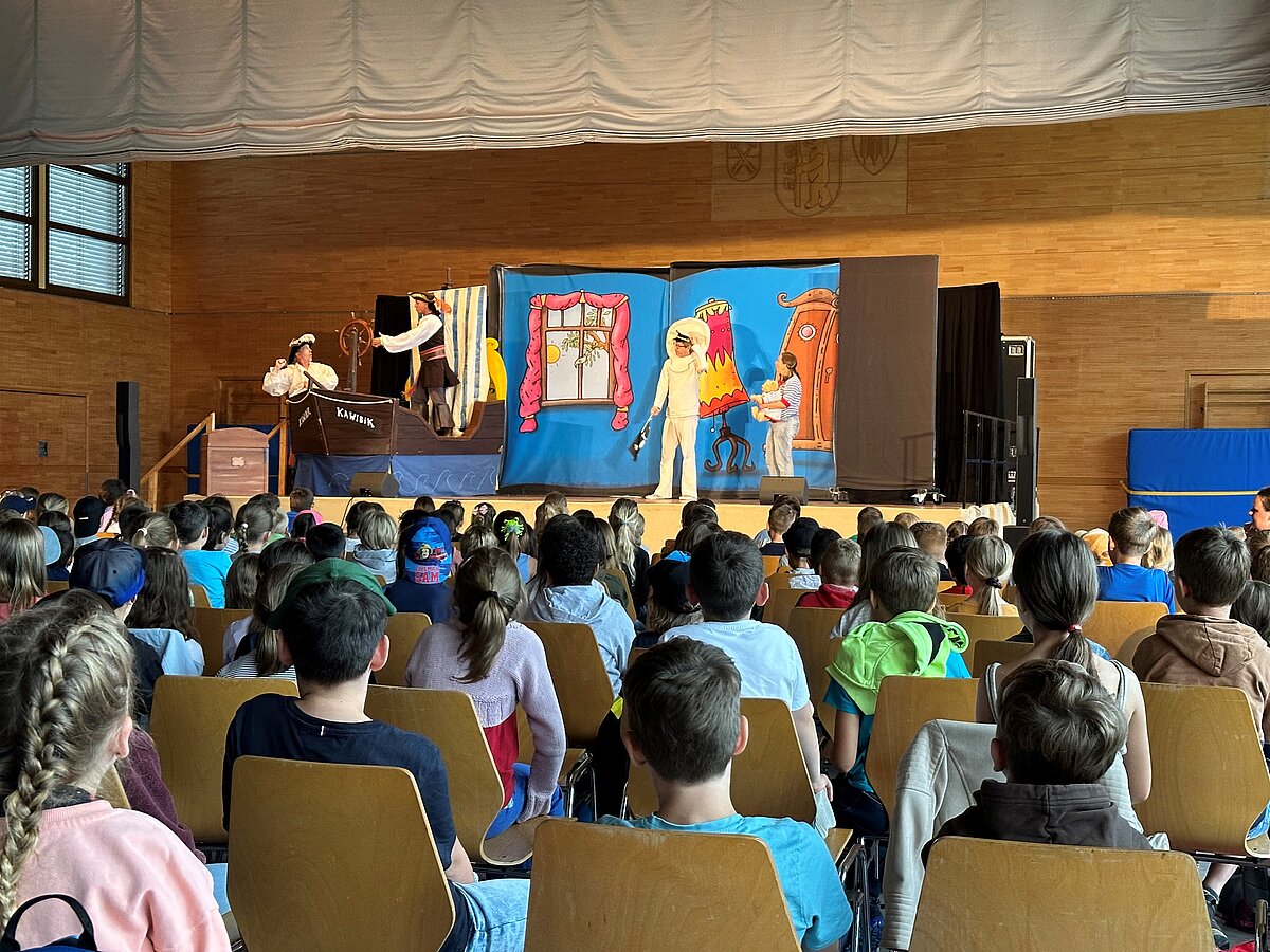 Mit ihrem Präventionsprogramm „Henrietta & Co. – Gesundheit spielend lernen“ stärkt die AOK Die AOK hat mit mehr als 20,9 Millionen Mitgliedern (Stand November 2021) als zweistärkste Kassenart… die körperliche und psychische Gesundheit von Grundschulkindern. Die vier Theaterstücke mit didaktischem Lern- und Spielmaterial für den Unterricht haben bisher mehr als vier Millionen Kinder erreicht. Mit Henrietta feiert die AOK 20 Jahre erfolgreiche Präventionsarbeit mit dem Kindertheater. Dank gilt an dieser Stelle auch der Organisatorin Kerstin Strobel, die das Theaterstück an die GMS Rangendingen Hirrlingen geholt hat und für einen reibungslosen Ablauf sorgte.