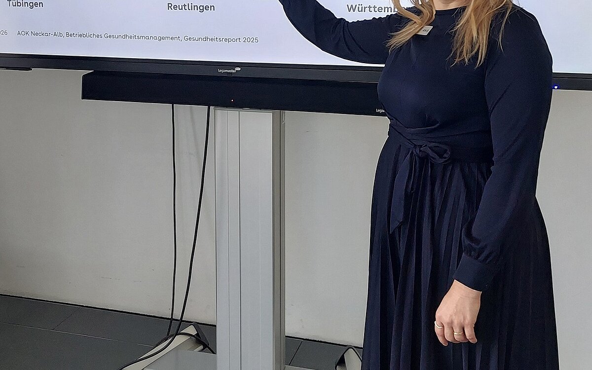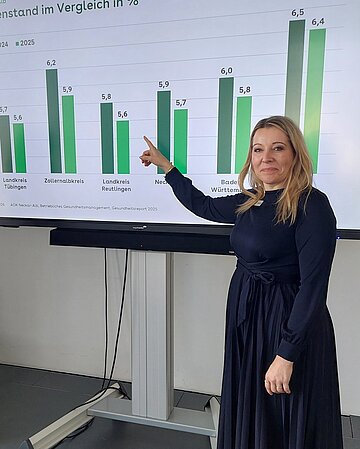 Marion Rostam, Geschäftsführerin der AOK Neckar-Alb, präsentiert den Krankenstand für die Landkreise Reutlingen und Tübingen.
