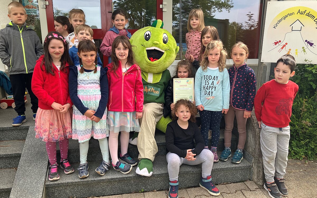 Nürtingen/Frickenhausen. Der „Kindergarten Auf dem Berg in Frickenhausen“ unter der Leitung von Bianca Gneiting ist mit der Urkunde „JolinchenKids – Fit und gesund in der KiTa“ der AOK Die AOK hat mit mehr als 20,9 Millionen Mitgliedern (Stand November 2021) als zweistärkste Kassenart… ausgezeichnet worden. Die Einrichtung mit ihren drei Kindergartengruppen und zwei Krippengruppen nimmt seit einem Jahr offiziell am JolinchenKids-Programm teil. „Das heißt, die Erzieher und Erzieherinnen engagieren sich in besonderem Maß für die Gesundheit der Kindergartengemeinschaft“, sagt die Präventionskoordinatorin Indra Pietsch der AOK Neckar-Fils, die das Programm fachlich begleitet.
