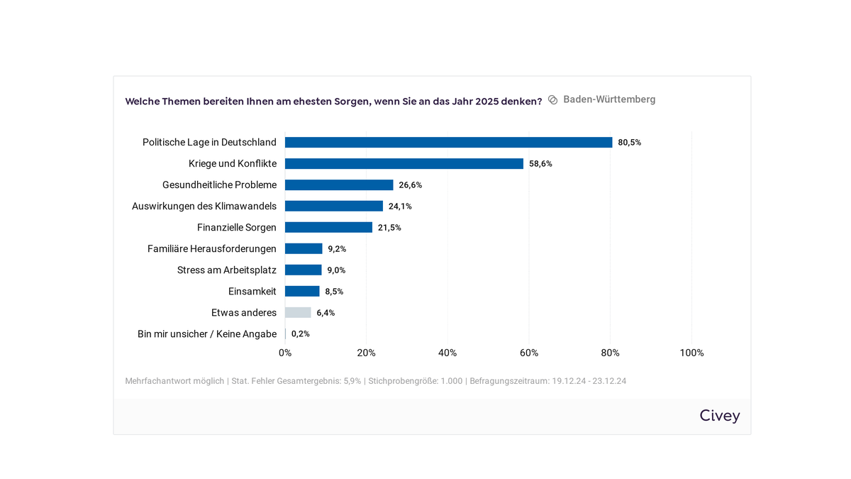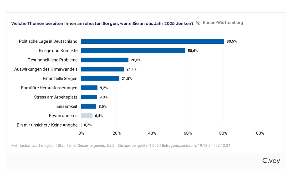 Für die repräsentative Umfrage wurden 1000 Menschen aus Baden-Württemberg zwischen dem 19. und 23. Dezember 2024 befragt.