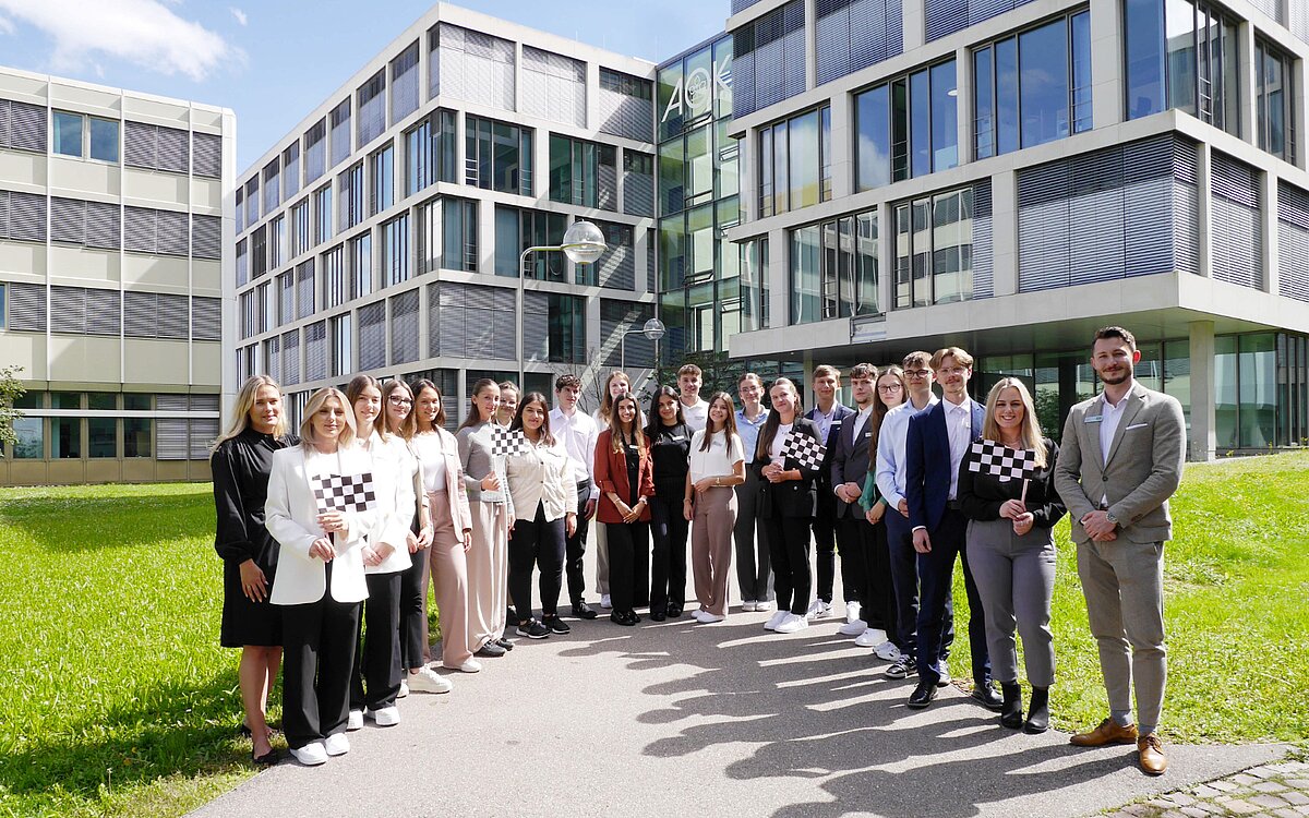 Nach zwei intensiven Einführungswochen kamen die Azubis und Studierenden in die verschiedenen Geschäftsbereiche der Gesundheitskasse. „Hier binden qualifizierte Ausbilderinnen und Ausbilder die jungen Berufsstarter sehr schnell in den beruflichen Alltag mit ein. So lernen sie die wichtigsten Ausbildungsinhalte von den Experten vor Ort. Aber vor allem sind sie nah bei den Menschen und deren Bedürfnissen“, erklärt Alina Salzinger, die selbst bei der AOK ihre Ausbildung gemacht hat. Vertiefende, theoretische Inhalte erwerben die Auszubildenden in Lehrgängen im AOK-Bildungszentrum sowie in der Berufsschule.