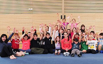 Die Viertklässler machen eifrig die Übungen am Boden nach und sind auch bei den Balancier-, Roll- und Kraftübungen diszipliniert und konzentriert mit dabei. „Das ist schon etwas Besonderes, dass so eine berühmte Turnerin bei uns ist“, sagt Lotta, als sie von der Übung auf der Matte zurückrennt. „Außerdem kenne ich niemanden, der bei olympischen Spielen mitgemacht hat“, ergänzt die Neunjährige und stellt sich dann schnell für die nächste Übung wieder hinter ihren Mitschülerinnen an.