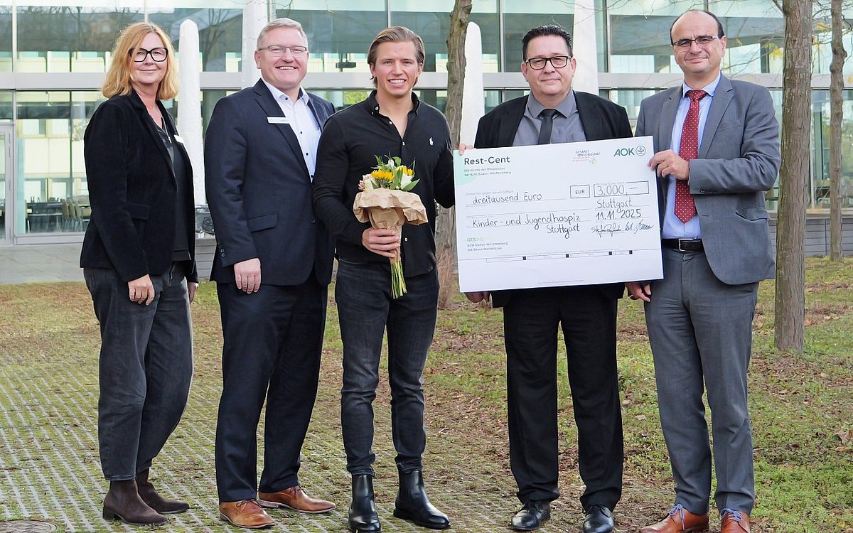 Im Rahmen der Rest-Cent-Initiative spenden AOK-Mitarbeitende in diesem Jahr insgesamt 17.000 Euro an gemeinnützige Organisationen in Baden-Württemberg. Ein Teil der Spendensumme geht auch in die Landeshauptstadt, an das Kinder- und Jugendhospiz Stuttgart.