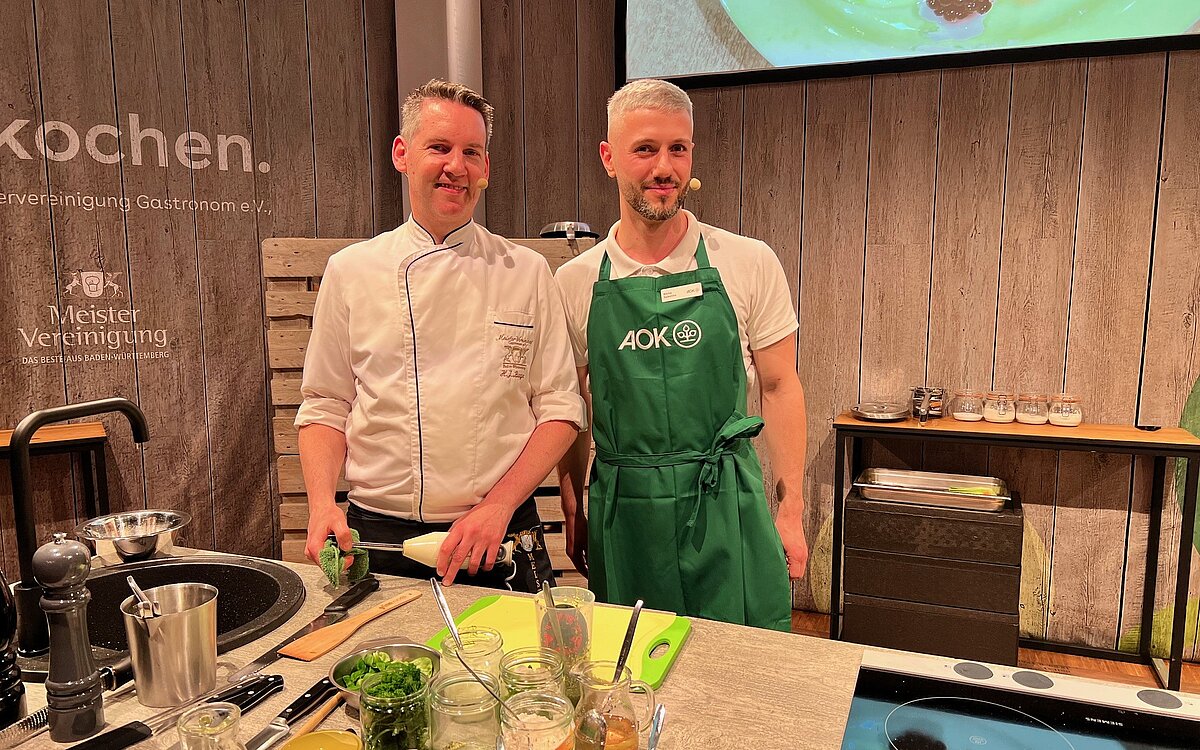 Oberkirch. Volles Haus, gespannte Erwartung und jede Menge Inspiration: Unter dem Motto „Nachhaltig genießen“ lud die AOK Die AOK hat mit mehr als 20,9 Millionen Mitgliedern (Stand November 2021) als zweistärkste Kassenart… Südlicher Oberrhein zur AOK Kochshow in die Festhalle Oberkirch ein. Gemeinsam mit Küchenmeister Hans Joachim Burger, Mitglied der Meistervereinigung Gastronom e.V. und Küchenchef der Pension Endehof in Elzach-Oberprechtal sowie dem AOK-Ernährungsexperten Nikita Sabatino erlebten die Gäste, wie genussvoll gesunde und nachhaltige Küche sein kann.