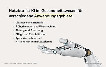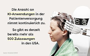 Künstliche Intelligenz (KI) hält mehr und mehr Einzug ins Gesundheitswesen. So gibt es etwa in den USA bereits mehr als 500 Zulassungen für KI-Anwendungen in der Patientenversorgung. Ihre Einsatzmöglichkeiten sind vielfältig. Denn durch ihre Fähigkeit, menschenähnlich zu denken und große Datenmengen zu analysieren, kann KI unter anderem bei der Früherkennung und Diagnose von Krankheiten unterstützen, bei der Pflege helfen oder die Patientenbetreuung in Form von Apps erleichtern.