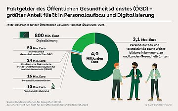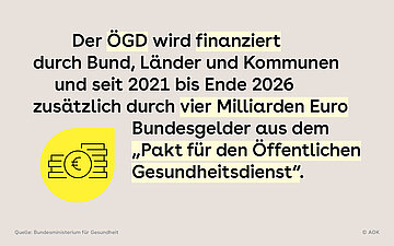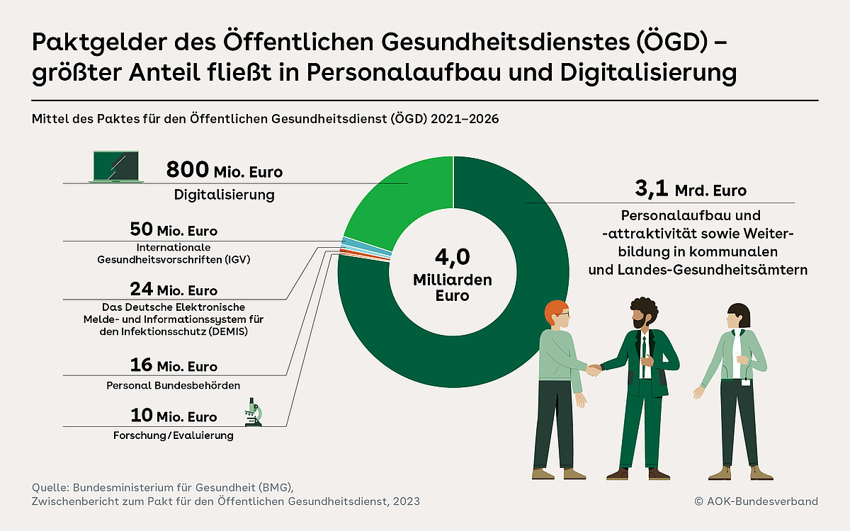 Mit dem „Pakt für den Öffentlichen Gesundheitsdienst“ fließen zwischen 2021 und 2026 vier Milliarden Euro zusätzliche Bundesgelder in die Länder und Kommunen, um den Öffentlichen Gesundheitsdienst (ÖGD) vor Ort zu stärken. Wie es ab 2027 finanziell weitergeht, muss noch entschieden werden.