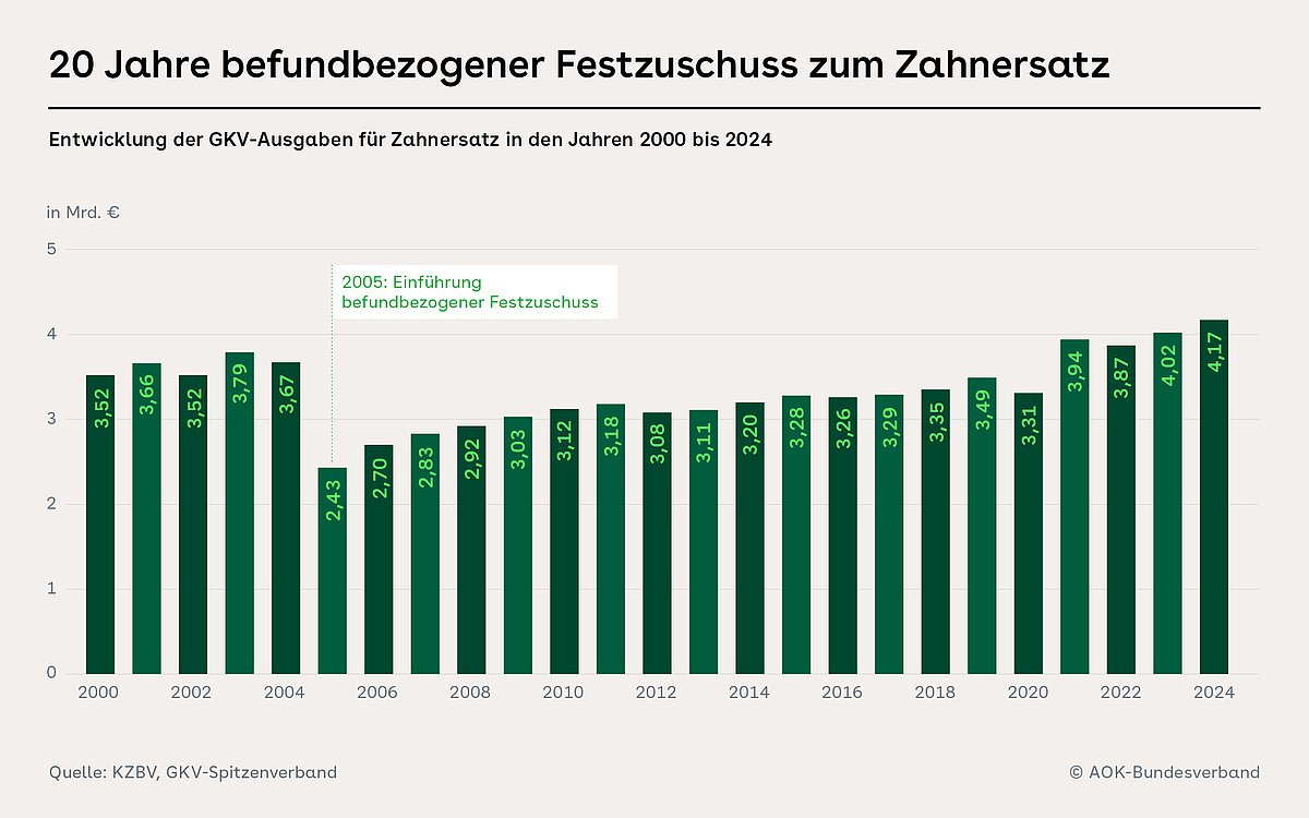 Mit der Einführung des befundbezogenen Festzuschusssystems im Jahr 2005 kam es zunächst zu einem starken Rückgang der Ausgaben für Zahnersatz in der gesetzlichen Krankenversicherung: Sie sanken um 33,7 Prozent – von 3,67 Milliarden auf 2,43 Milliarden Euro. Ein Forschungsbericht des Instituts der Deutschen Zahnärzte (IDZ) führte dies vor allem auf fehlende Übergangsregelungen und sogenannte Vorzieheffekte zurück, die zu weniger Behandlungsfällen im Einführungsjahr führten.