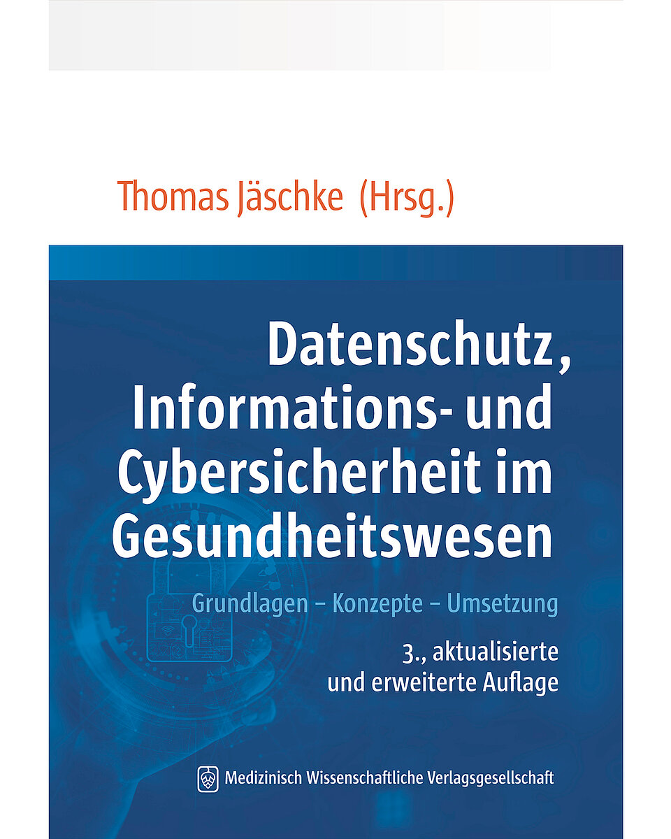Thomas Jäschke (Hrsg.): Datenschutz, Informations- und Cybersicherheit im Gesundheitswesen. Berlin, Medizinisch Wissenschaftliche Verlagsgesellschaft, 2023, 3. Auflage, 468 Seiten, 99,95 Euro