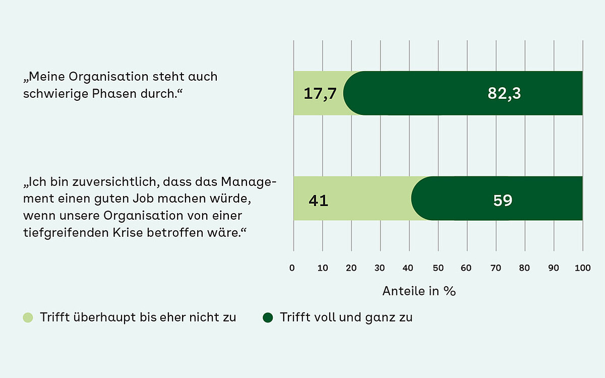 Doch wie ist es um die Krisenfestigkeit von Unternehmen bestellt? Nach einer im Fehlzeiten-Report 2023 veröffentlichten repräsentativen Umfrage des Wissenschaftlichen Instituts der AOK (WIdO) bewertet die Mehrheit der Beschäftigten das Krisenmanagement ihres Unternehmens insgesamt positiv (52,2 Prozent). 82,3 Prozent der Befragten sind zudem der Ansicht, dass ihr Betrieb auch schwierige Phasen durchstehen kann. Und 59 Prozent der Befragten sind zuversichtlich, dass das Management einen guten Job machen würde, wenn das Unternehmen von einer tiefgreifenden Krise betroffen wäre.