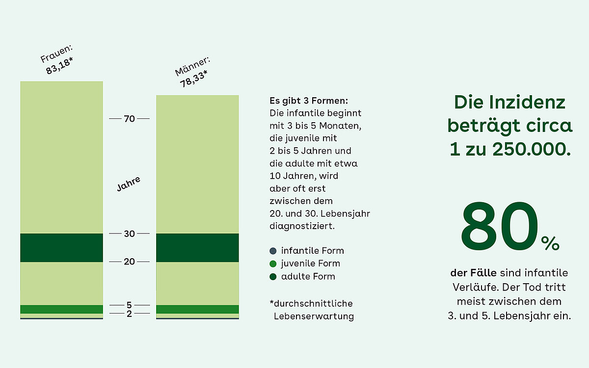 Quellen: Ruhr-Universität Bochum, tay-sachs-sandhoff.de, tays-sachs.net, Statistisches Bundesamt