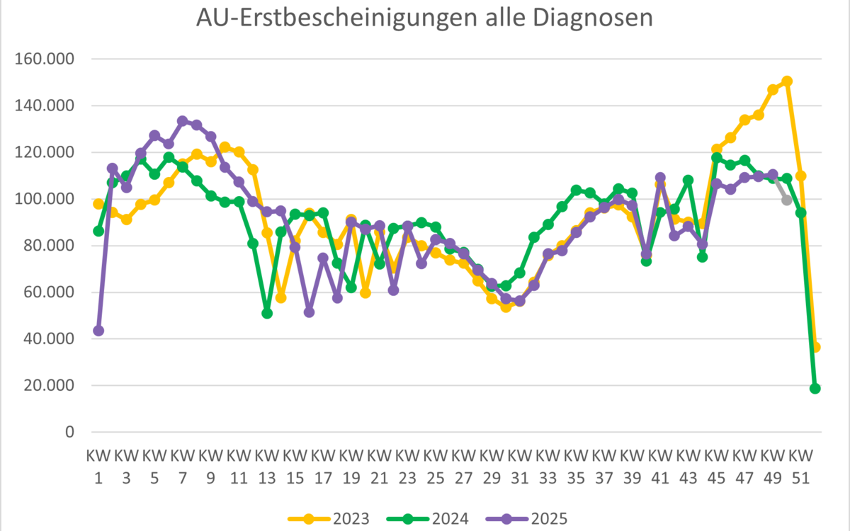 | Alle Erstkrankschreibungen (alle Diagnosen) | 106.551 | 104.195 | 109.192 | 109.510 | 110.481 | 99.483 |