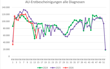 | Alle Erstkrankschreibungen (alle Diagnosen) | 95.134 | 94.086 | 75.388 | 52.797 | 75.890 | 82.699 |