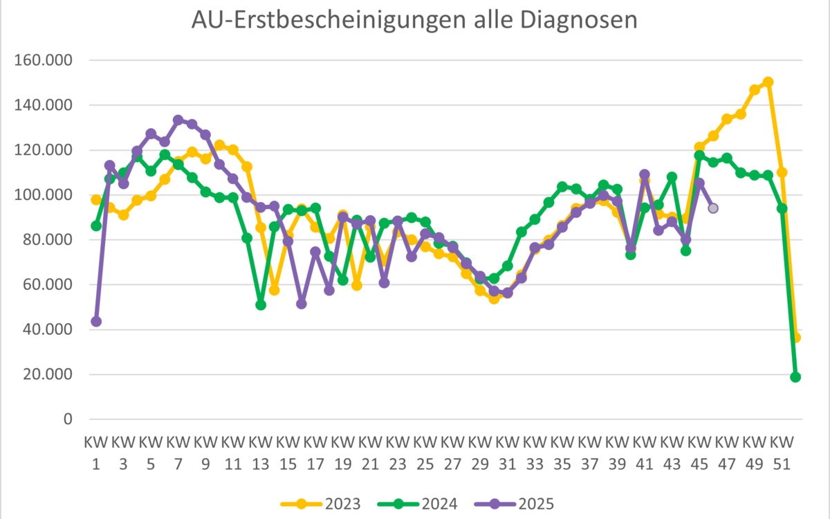 Erstkrankschreibungen absolute Fallzahlen | 41. KW 2025 | 42. KW 2025 | 43. KW 2025 | 44. KW 2025 | 45. KW 2025 | 46. KW 2025 |