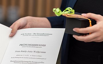 Top ausgebildete Sozialversicherungsfachangestellte starten jetzt bei uns durch: Nach allen bestanden Prüfungen gab es nun das Zeugnis, feierlich überreicht vom stellvertretenden Vorstandsvorsitzenden der AOK Nordost, Hans-Joachim Fritzen.