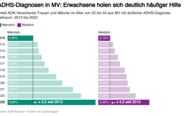 „Unsere Datenanalyse zeigt vor allem eines: Das Dunkelfeld bei ADHS wird in Mecklenburg-Vorpommern heller. Ärztlich diagnostiziertes ADHS ist ausdrücklich keine ‚Modediagnose‘. Wir begrüßen, dass mehr Betroffene – insbesondere jüngere Frauen – sich Unterstützung suchen“, ordnet Dr. Sylvia Böhme, Psychotherapeutin bei der AOK Nordost, die Zahlen ein.