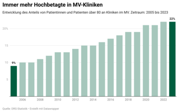 Laut Krankenhaus Krankenhäuser sind Einrichtungen der stationären Versorgung, deren Kern die Akut- beziehungsweise… -Report werden immer mehr Patientinnen und Patienten über 80 in Kliniken in MV behandelt. In den letzten knapp 20 Jahren ist deren Anteil an allen Behandlungen kontinuierlich gestiegen – von 9 Prozent im Jahr 2005 auf 22 Prozent im Jahr 2023. Hochbetagte haben oft mehrere Erkrankungen gleichzeitig und einen besonders hohen medizinischen und pflegerischen Bedarf. Darauf seien die Kliniken in MV in vielen Fällen nur unzureichend vorbereitet, betonen die Autoren des Krankenhaus-Reports.