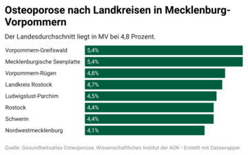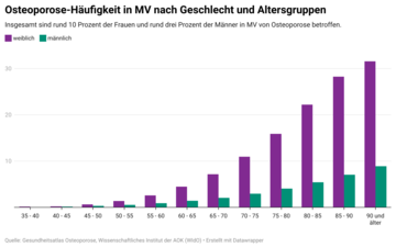 Insgesamt sind in MV 4,8 Prozent der Menschen von der chronischen Skeletterkrankung betroffen – in Summe rund 54.000 Personen.