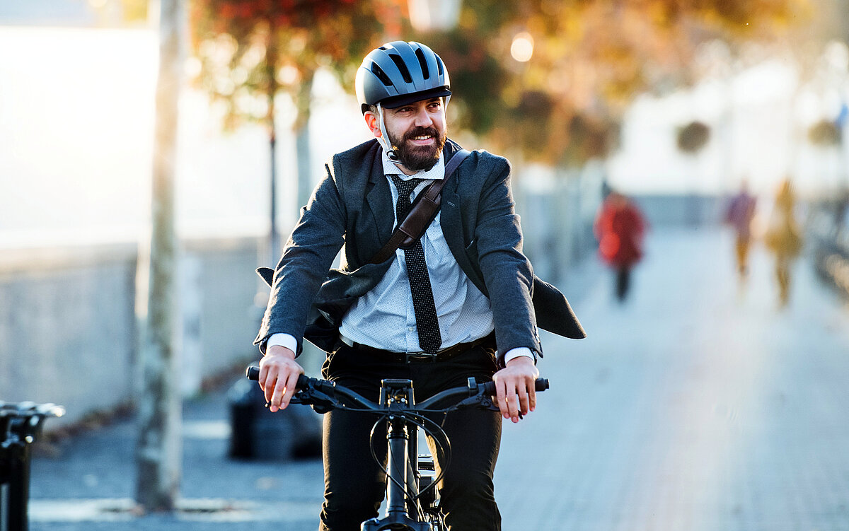 Auf dem Weg zur Arbeit mit dem Fahrrad