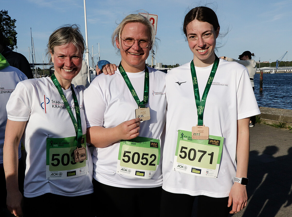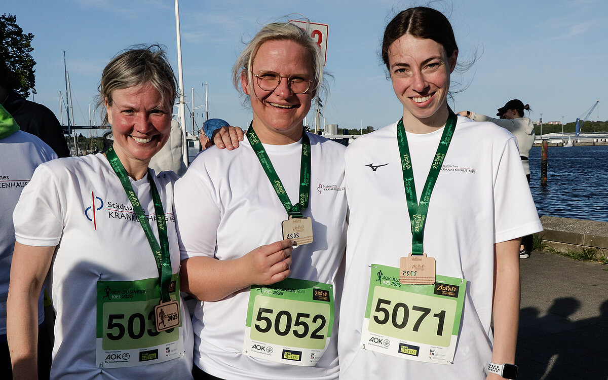 Die Läuferinnen und Läufer waren zügig unterwegs und freuten sich besonders über die maritime Laufstrecke entlang der Kiellinie. Im Ziel wurde auch der oder die letzte Laufende eines Teams begeistert empfangen. Jeder oder jede konnte in seinem oder ihrem Tempo laufen. Häufig erreichten Läufergruppen eines Firmen-Teams gemeinsam das Ziel oder wurden dort von den wartenden Kollegen empfangen. Zur Erinnerung an den AOK-Business.Run gab es für alle Teilnehmenden im Ziel eine ‚Finisher-Medaille‘. Nach dem Lauf klang die Veranstaltung mit der beliebten After-Run-Party mit Musik und kühlen Getränken gemütlich aus.