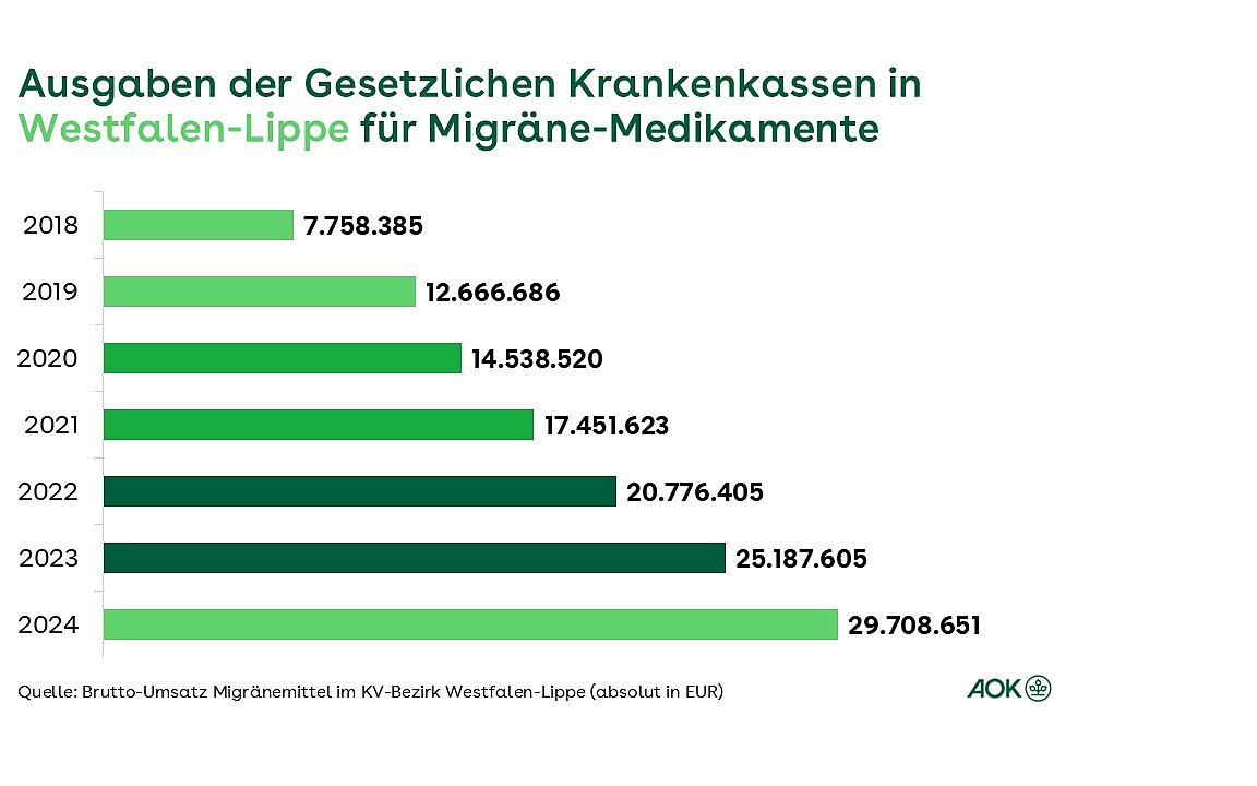 Ausgaben für Migränemedikamente in Westfalen-Lippe weiter deutlich gestiegen