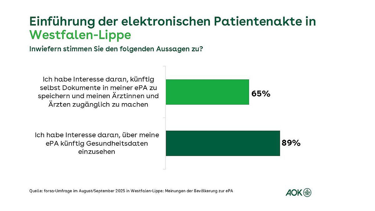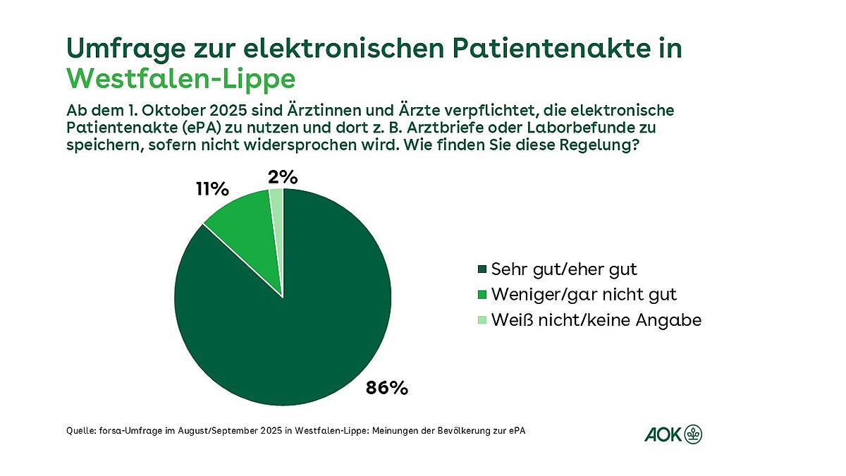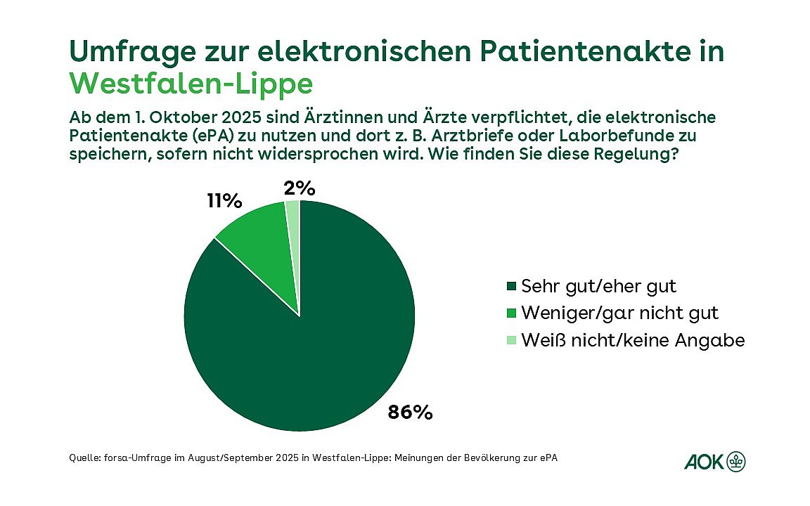 Große Akzeptanz der Menschen in Westfalen-Lippe für verpflichtende Nutzung der elektronischen Patientenakte durch Ärztinnen und Ärzte