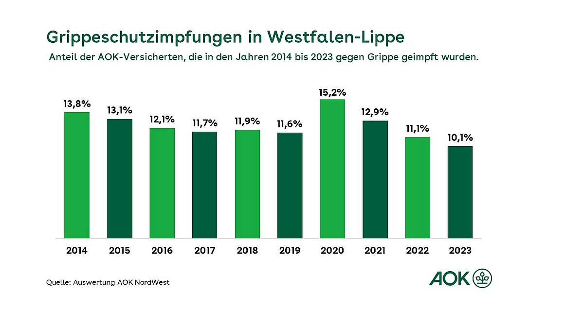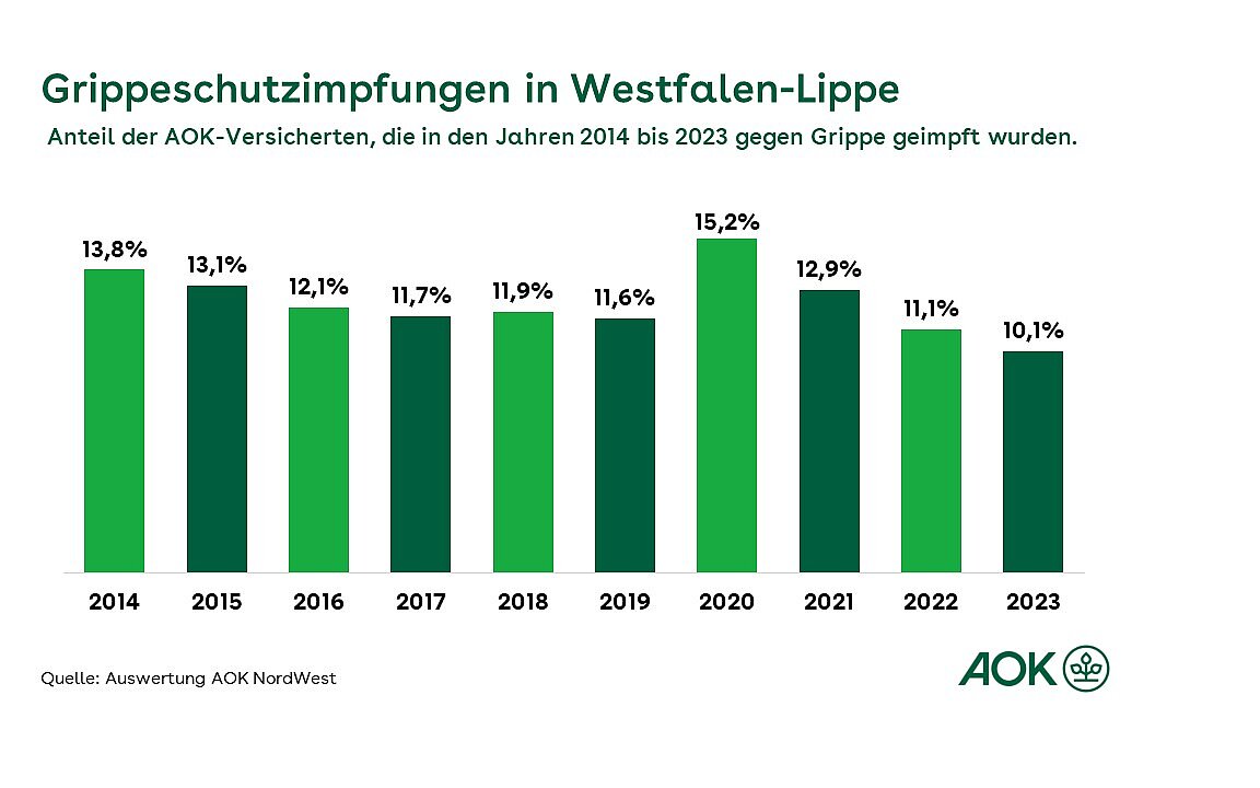 „In Westfalen-Lippe haben sich in den vergangenen zehn Jahren noch nie so wenige AOK-Versicherte gegen Grippe impfen lassen wie in 2023.“