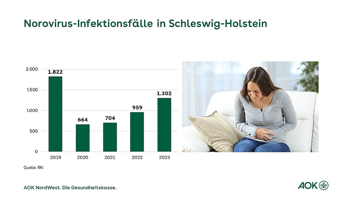 Grafik: In Schleswig-Holstein steigen die Norovirus-Fälle wieder rasant an.
