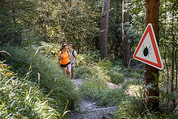 „Deshalb empfiehlt es sich, den Zecken das Zustechen so schwer wie möglich zu machen. Dazu gehört, beim Wandern oder Spazierengehen auf Wegen zu bleiben und hohes Gras oder Unterholz zu meiden. Festes Schuhwerk, lange Hosen und langärmelige Oberbekleidung sind ebenfalls von Vorteil. Außerdem sollten nach einem Ausflug Kleidung und Körper nach Zecken abgesucht werden – insbesondere warme Hautstellen wie Kniekehlen, Achselhöhlen, Hals oder Kopf.“