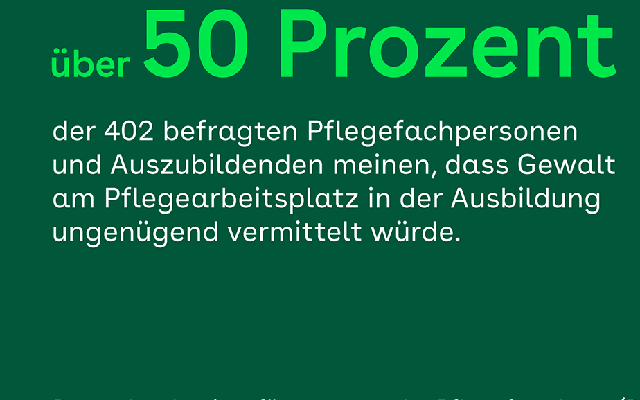 Was kommt in der Praxis an? Das Deutsche Institut für angewandte Pflegeforschung (DIP) befragte 2017 hat mit der B. Braun-Stiftung 402 Pflegefachpersonen und Auszubildende zu ihren persönlichen Gewalterfahrungen in der Pflege befragt: Nur knapp 30 Prozent bestätigten, dass Wissen zur Entstehung von Gewalt am Pflegearbeitsplatz in der Ausbildung vermittelt worden sei – über 50 Prozent der Befragten meinten, dass dies ungenügend gelehrt wurde. Hier gibt es einen auffallenden Widerspruch zwischen dem verbreiteten Vorkommen von Gewalt in der Pflege und der Vermittlung dieses Themas in der Pflegeausbildung.