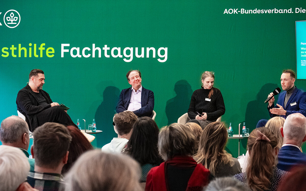 In der Podiumsdiskussion diskutierten Leichsenring und Danner zunächst mit Oliver Huizinga, dem Leiter der Präventionsabteilung des AOK-Bundesverbandes – anschließend stellten sich die Drei den Fragen der Teilnehmerinnen und Teilnehmer. Huizinga wies darauf hin, dass viele Deutsche eine unzureichende Gesundheitskompetenz hätten: „Wir haben in verschiedenen Studien herausgefunden, dass vor allem die Bewertung, ob eine gefundene Information glaubhaft und seriös ist oder nicht, vielen Menschen Probleme bereitet.“ Doch dieser Befund allein reiche nicht aus – in der Debatte dürfe die Verantwortung nicht allein auf die Individuen abgewälzt werden. Vielmehr müssten alle Akteure im Gesundheitssystem Verantwortung dafür übernehmen, dass seriöse und somit fachlich geprüfte Inhalte für alle Bürgerinnen und Bürger überhaupt erst einmal bereitstehen. „Diese Gesundheitsinformationen müssen dann leicht im Netz zu finden und vor allem gut zu verstehen sein“, so Huizinga weiter. Das Online-Gesundheitsmagazin der AOK-Gemeinschaft sei hierfür ein gutes Beispiel. Hier informiert die Gesundheitskasse in Hunderten von Beiträgen zu verschiedenen Erkrankungen oder gesundheitlichen Störungen. Bis zu 5,8 Millionen Menschen nutzten dieses Angebot bereits jeden Monat, um sich evidenzbasiert zu informieren, so der Präventionsexperte Huizinga.