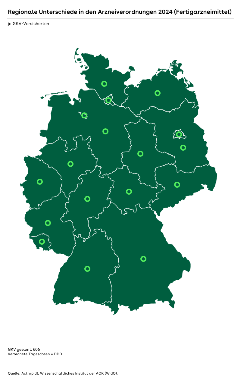 Regionale Unterschiede in den Arzneiverordnungen 2024 für GKV-versicherte Personen in Deutschland.