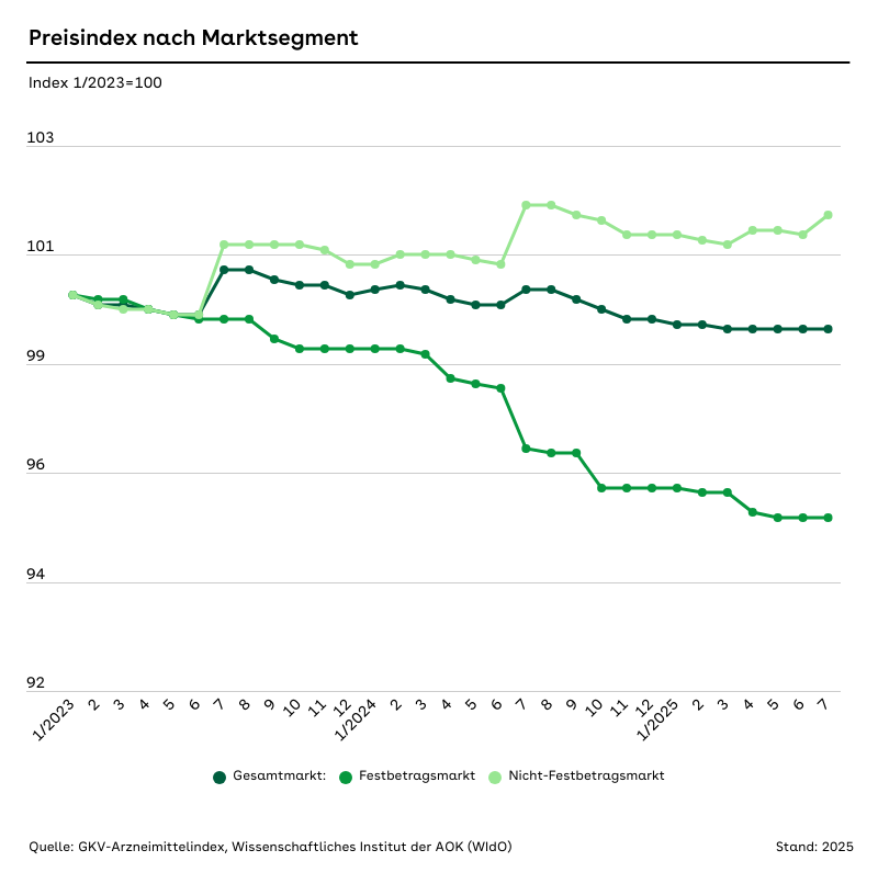 Der Preisindex nach Marktsegment zeigt die Preisentwicklung im Gesundheitssektor seit Anfang 2023.