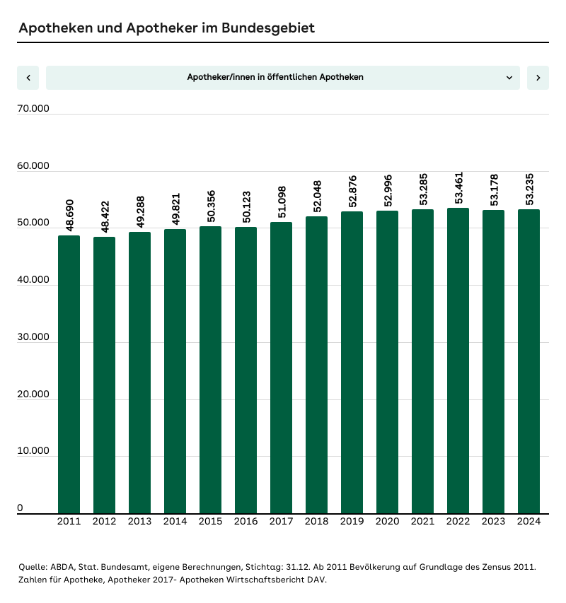 Anzahl öffentlicher Apotheken sowie Apotheker und Apothekerinnen in Deutschland von 2011 bis 2024.