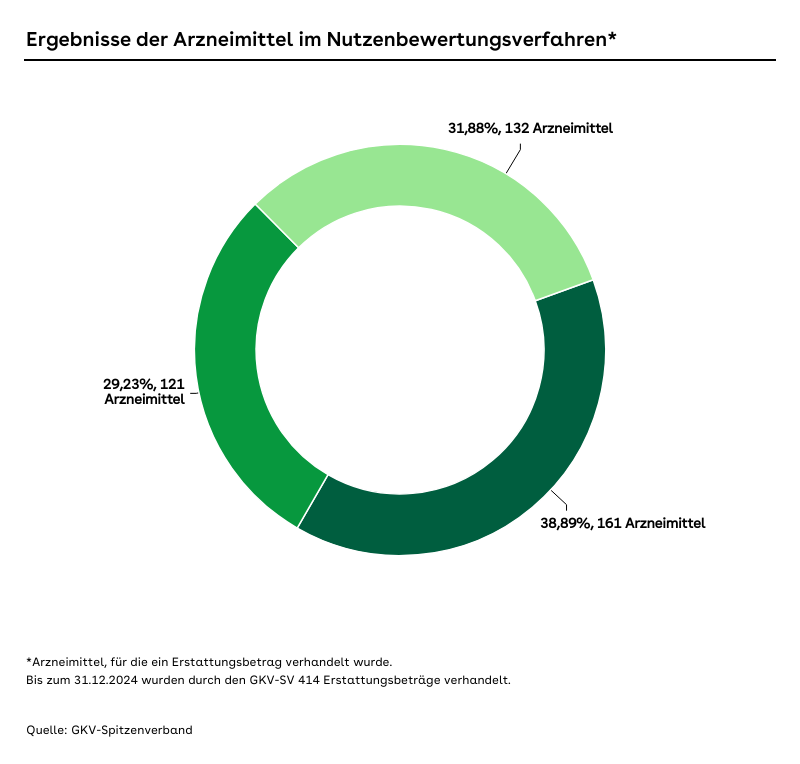 Ergebnisse der Nutzenbewertung von Arzneimitteln bis Ende 2024.