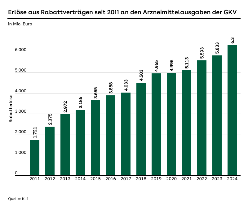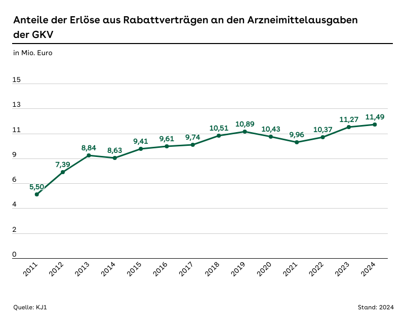 Erlöse aus Rabattverträgen an Arzneimittelausgaben der GKV von 2011 bis 2024.